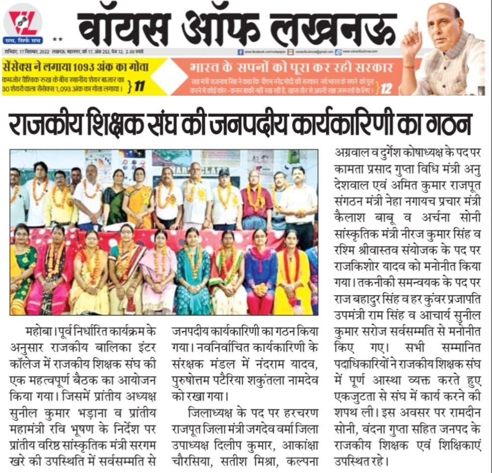 राजकीय शिक्षक संघ की कार्यकारिणी गठित Ggic Mahoba