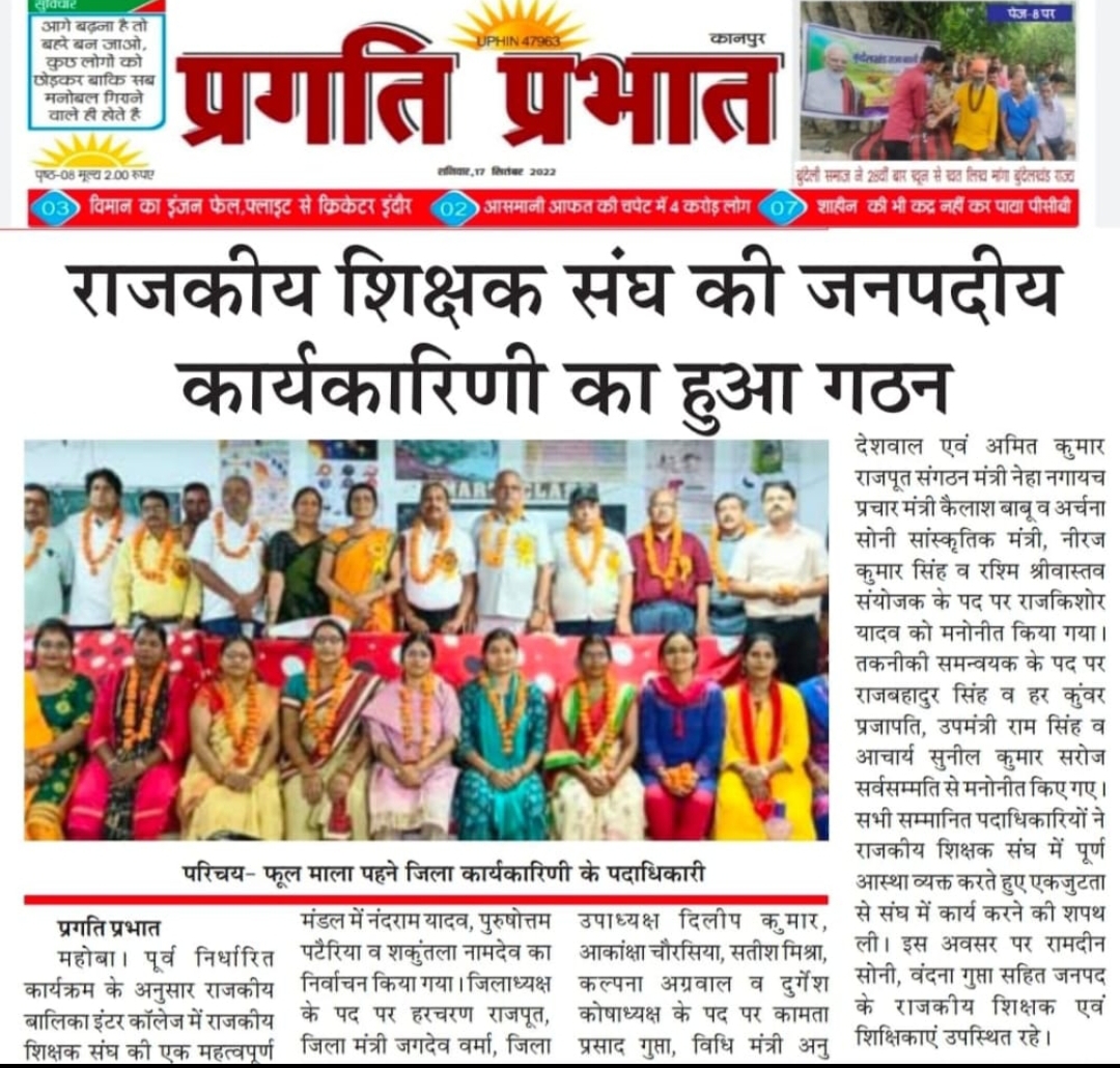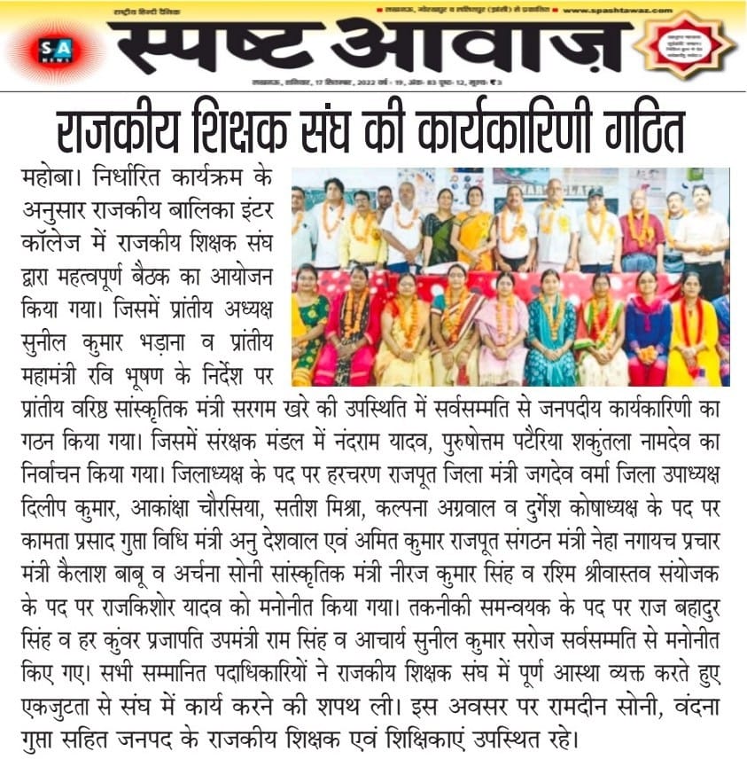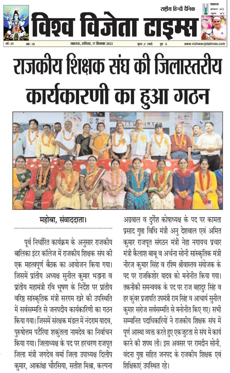 राजकीय शिक्षक संघ की कार्यकारिणी गठित Ggic Mahoba